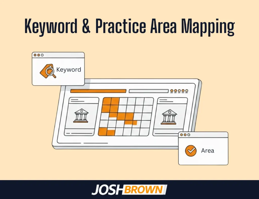 Josh Brown maps high-intent keywords to each legal service offered by Phoenix law firms. Terms like Phoenix personal injury lawyer or DUI attorney near Camelback East match directly to local search behavior.