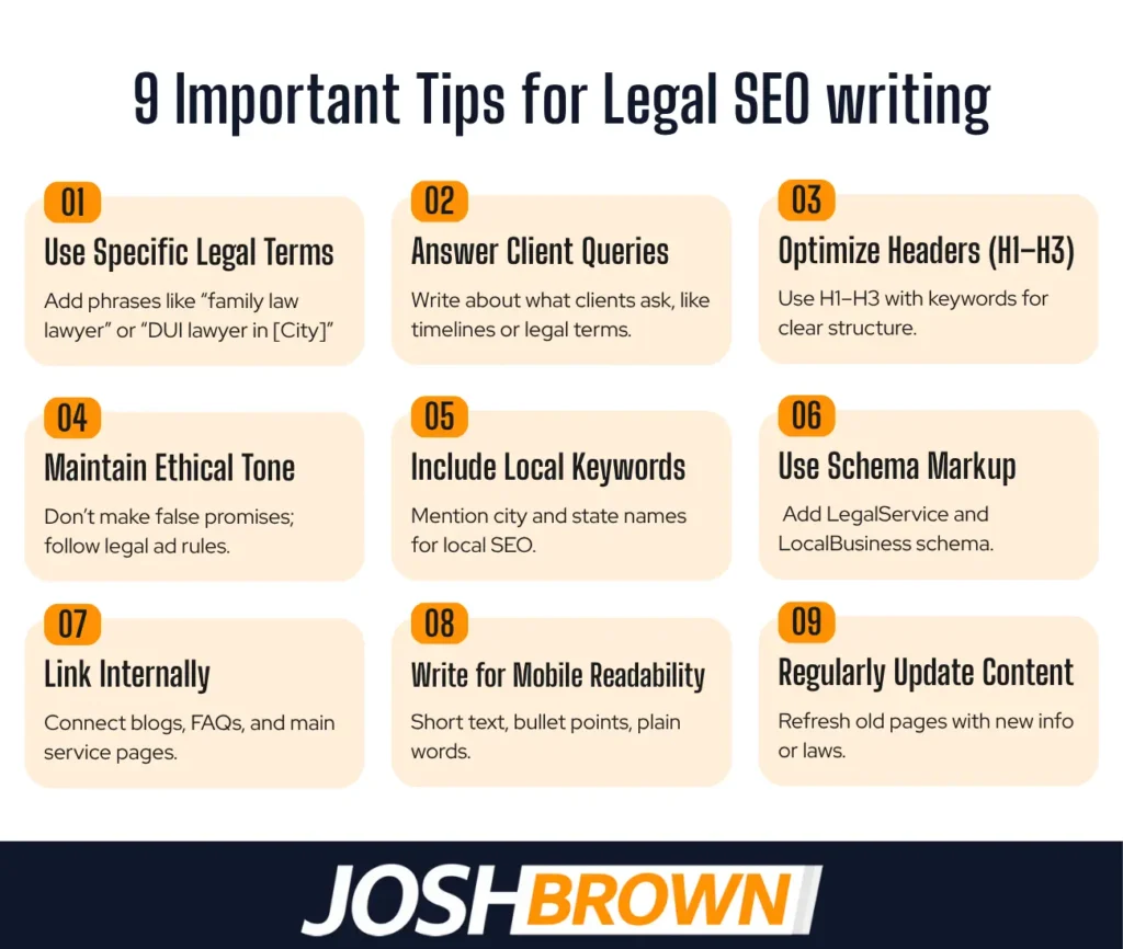 Listed below are 9 important tips for legal SEO writing.