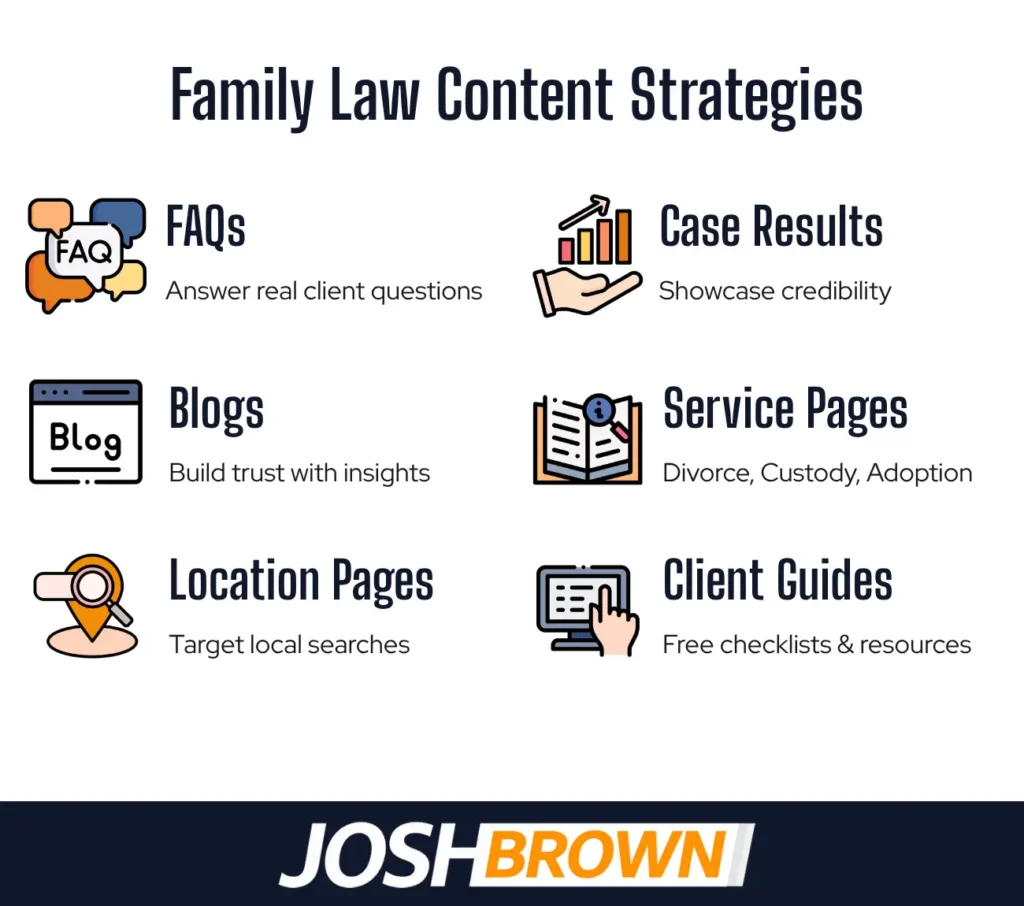 - Content Strategy for Family Law: Ask for expertise in creating compassionate, legally accurate content like FAQs and service pages.