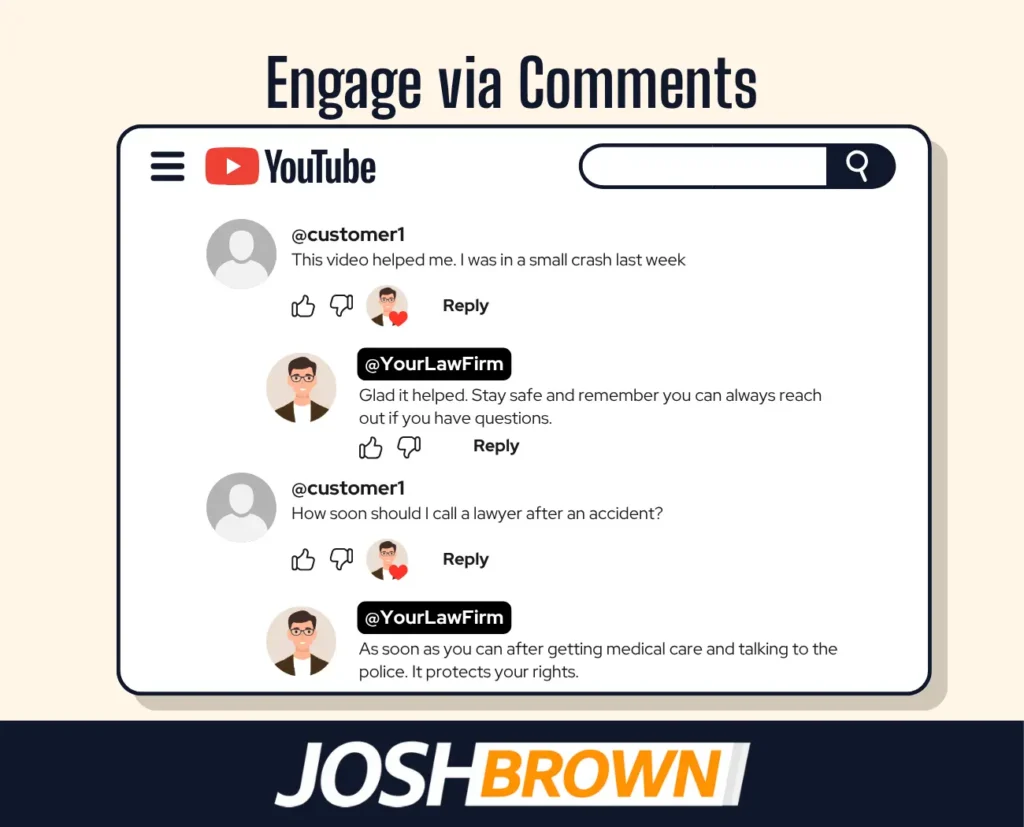 • Create legal video content: Use YouTube or website videos to explain services and answer FAQs.
