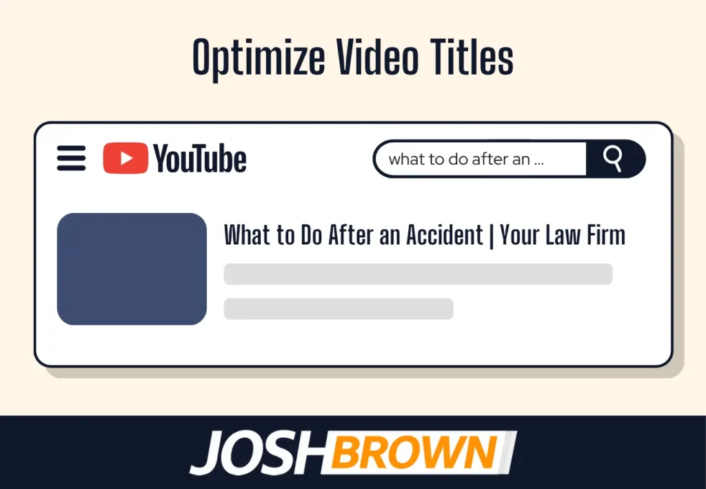 YouTube video SEO begins with optimizing titles to improve discoverability and ranking in both YouTube and Google search results. Titles signal video content and relevance to algorithms and users. Strategic titles must include core legal keywords, geographic modifiers, and user-intent phrases. Limit titles to 60 characters, place the primary keyword early, and match the spoken content for accuracy. Updating titles based on performance insights helps maintain ranking and viewer retention.
