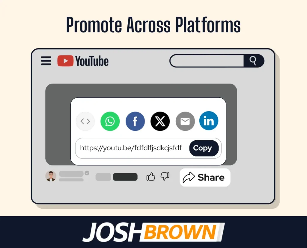 Cross-platform promotion amplifies reach and strengthens video performance signals. Share videos on your website, email newsletters, LinkedIn, and Facebook. Embed clips on practice area pages and blog posts to reinforce content context. Consistent off-platform sharing drives external traffic, which YouTube tracks as a ranking factor.